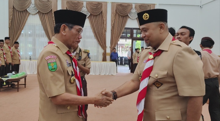 Wakil Ketua Orgakum Kwartir Daerah Gerakan Pramuka Kalbar Kakak Syarif Amin Muhammad menyampaikan ucapan selamat kepada Kakak Ani Sofian yang telah resmi dilantik selaku Pj Ketua Mabicab Gerakan Pramuka Kota Pontianak.