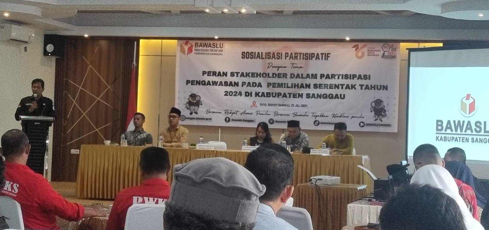 FAKTA IKN – Badan Pengawas Pemilu (Bawaslu) Kabupaten Sanggau menggelar sosialisasi partisipatif bertempat di lantai dua Harvey hotel Kota Sanggau, Kamis 25 Juli 2024. Acara yang diikuti pimpinan organisasi masyarakat dan media massa itu itu bertujuan menumbuhkan semangat partisipatif dari masyarakat dan media massa untuk mengawasi jalannya proses pemilihan kepala daerah (Pilkada) November 2024 mendatang.