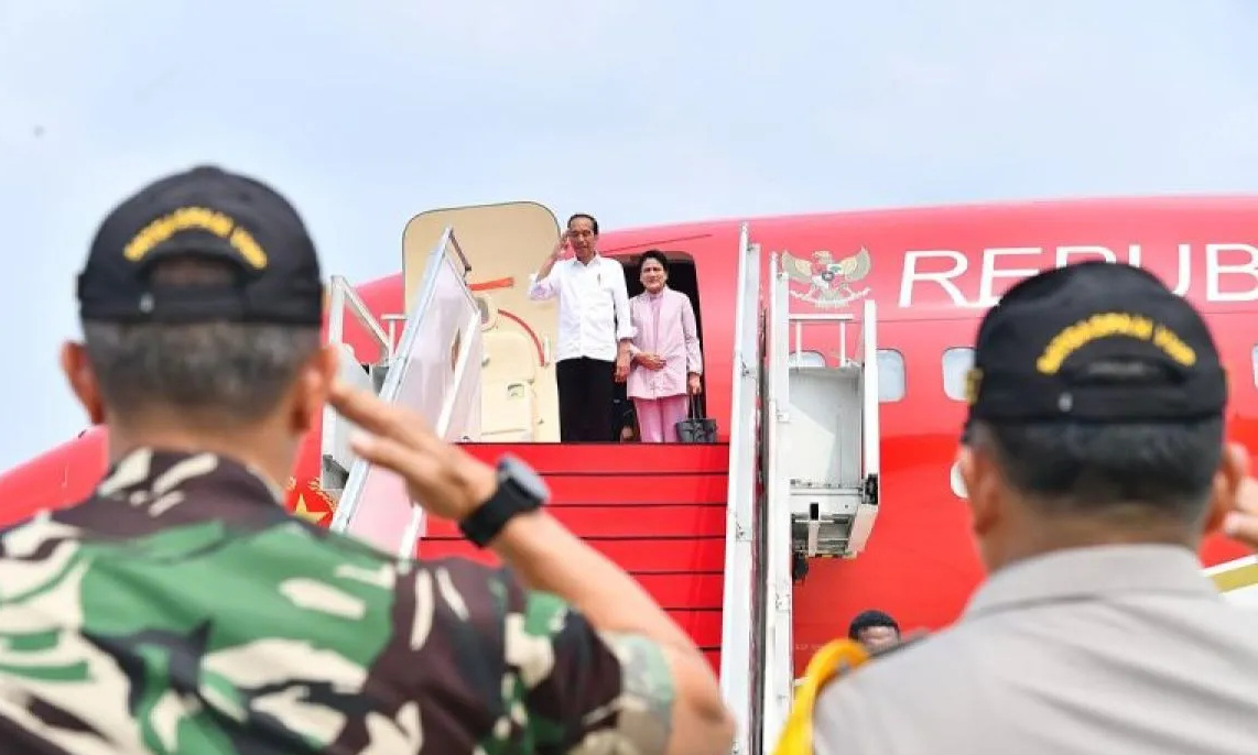 Presiden Jokowi didampingi Ibu Iriana Joko Widodo berangkat menggunakan Pesawat Kepresidenan Indonesia-1 yang lepas landas dari Pangkalan TNI AU Halim Perdanakusuma, Jakarta, sekitar pukul 13.30 WIB.