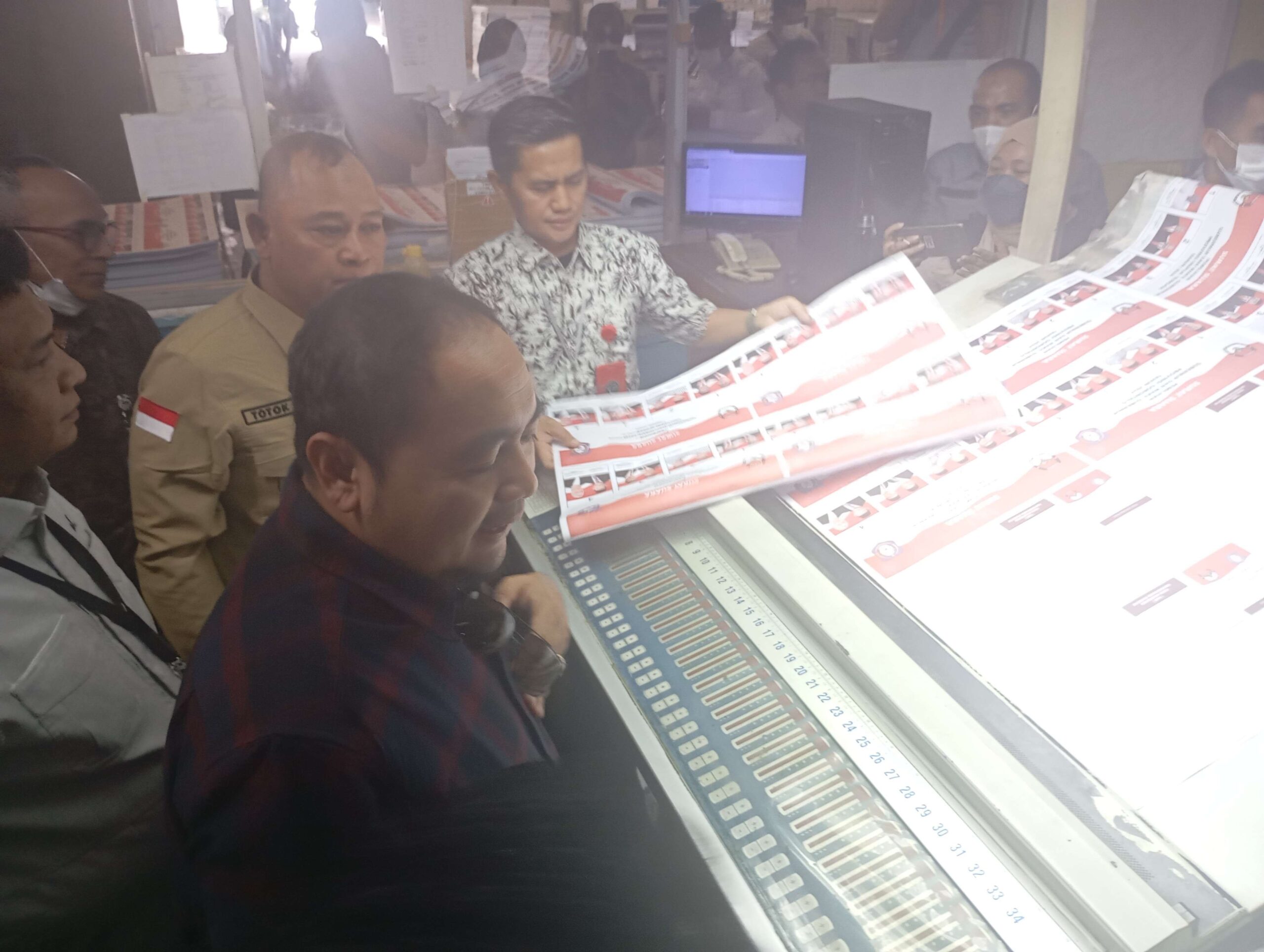 FAKTA GRUP – Ketua Komisi Pemilihan Umum (KPU) Mochammad Afifudin, melakukan supervisi dan monitoring pencetakan surat suara pilkada 2024. Salah satu lokasi yang dikunjungi adalah PT Antar Surya Jaya, di Jalan Rungkut Industri Surabaya.