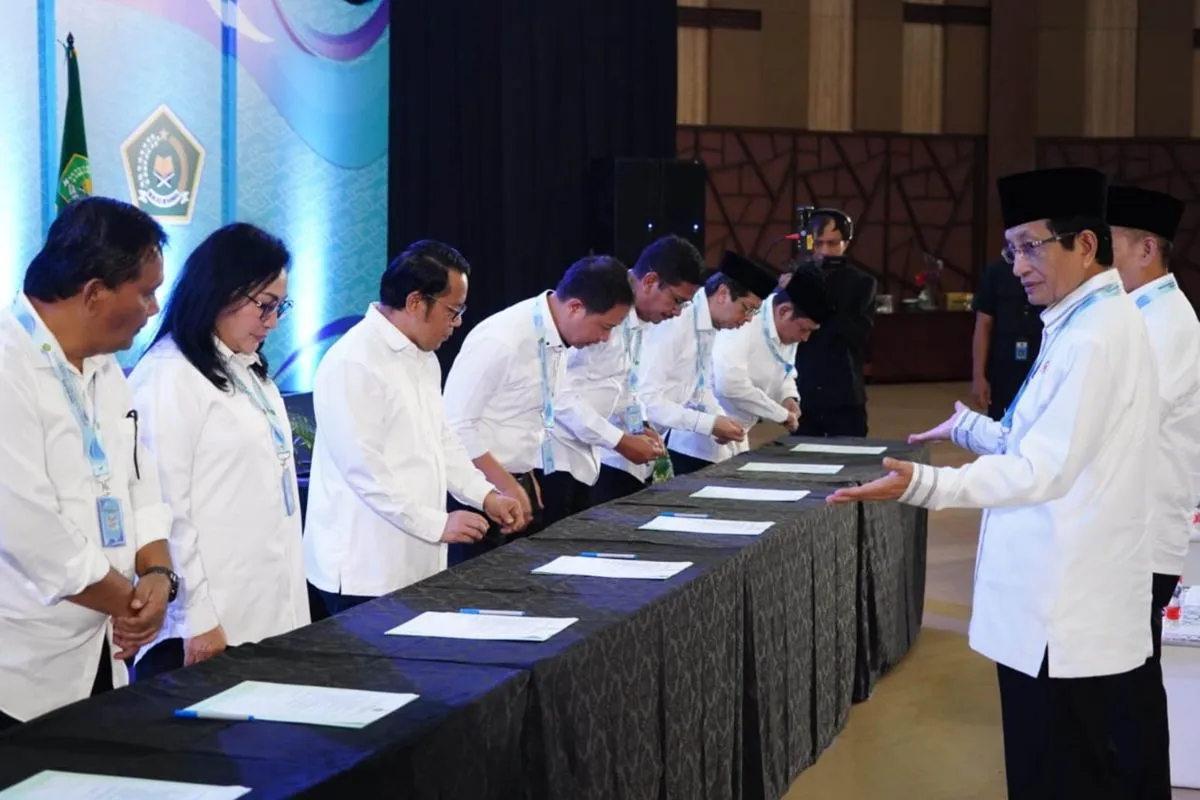 Pakta Integritas ditandatangani para Pejabat Eselon I Kementerian Agama, yaitu Sekjen Ali Ramdhani, Irjen Faisal Ali Hasyim, Dirjen Pendidikan Islam Abu Rokhmad, Dirjen Penyelenggaraan Haji dan Umrah Hilman Latief, Dirjen Bimas Islam Kamaruddin Amin.
