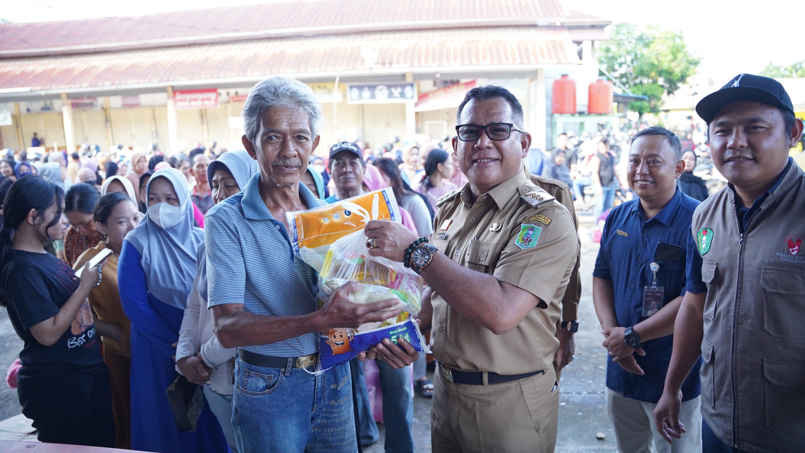 Ratusan warga kota Sanggau terpantau mengantri sejak pagi untuk mendapatkan paket sembako murah.