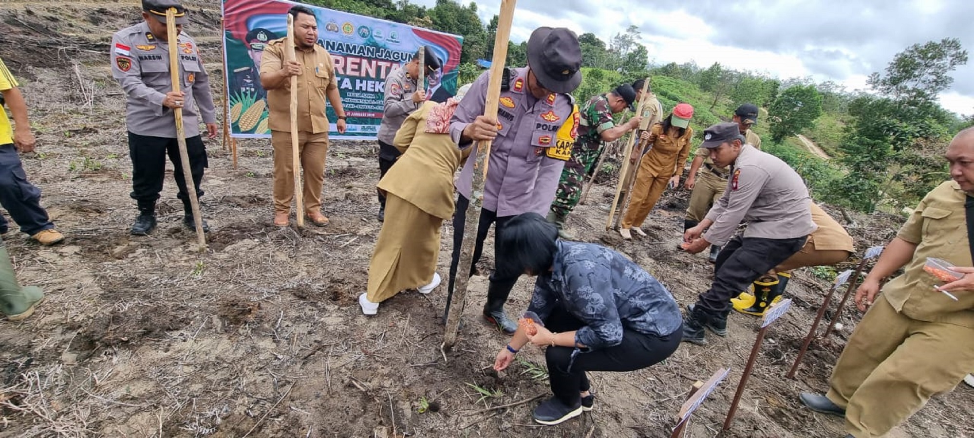 “Kami bersama para tamu undangan dan kelompok tani tadi sudah melakukan penanaman bibit Jagung Hibrida secara simbolis,” ujar Kapolsek.
