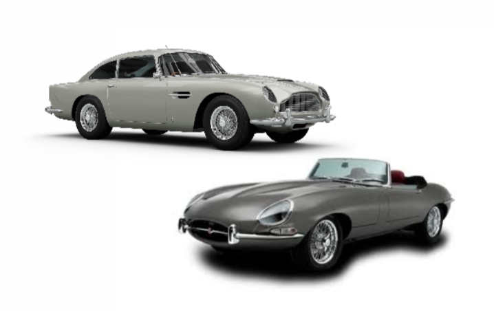 Dua ikon yang telah meninggalkan jejak mendalam dalam sejarah otomotif adalah Aston Martin DB5 dan Jaguar E-Type.